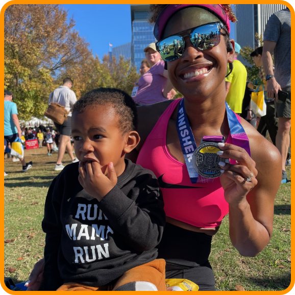 Since then, I have completed 9 half marathons and 2 full marathons, including the Chicago World Major in 2023 while pregnant with my daughter. During my second pregnancy, I learned to adjust and give myself grace, completing my 80/20 Endurance and Pregnancy and Postpartum Athleticism Certifications with the support of the Coaches of Color Initiative (COCI) Apprenticeship. This time as a student, mother, and coach inspired the vision for Running to Exhale.